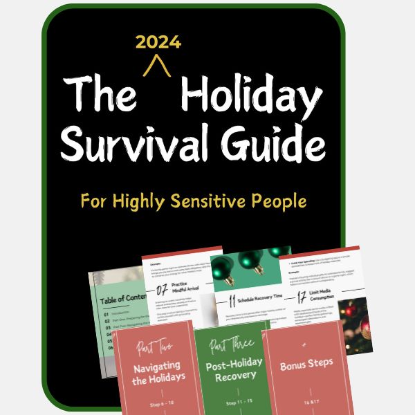 This is why I created “The Highly Sensitive Person’s Guide to Surviving the Holidays”, a 3-part survival plan designed for HSPs navigating the holiday season.